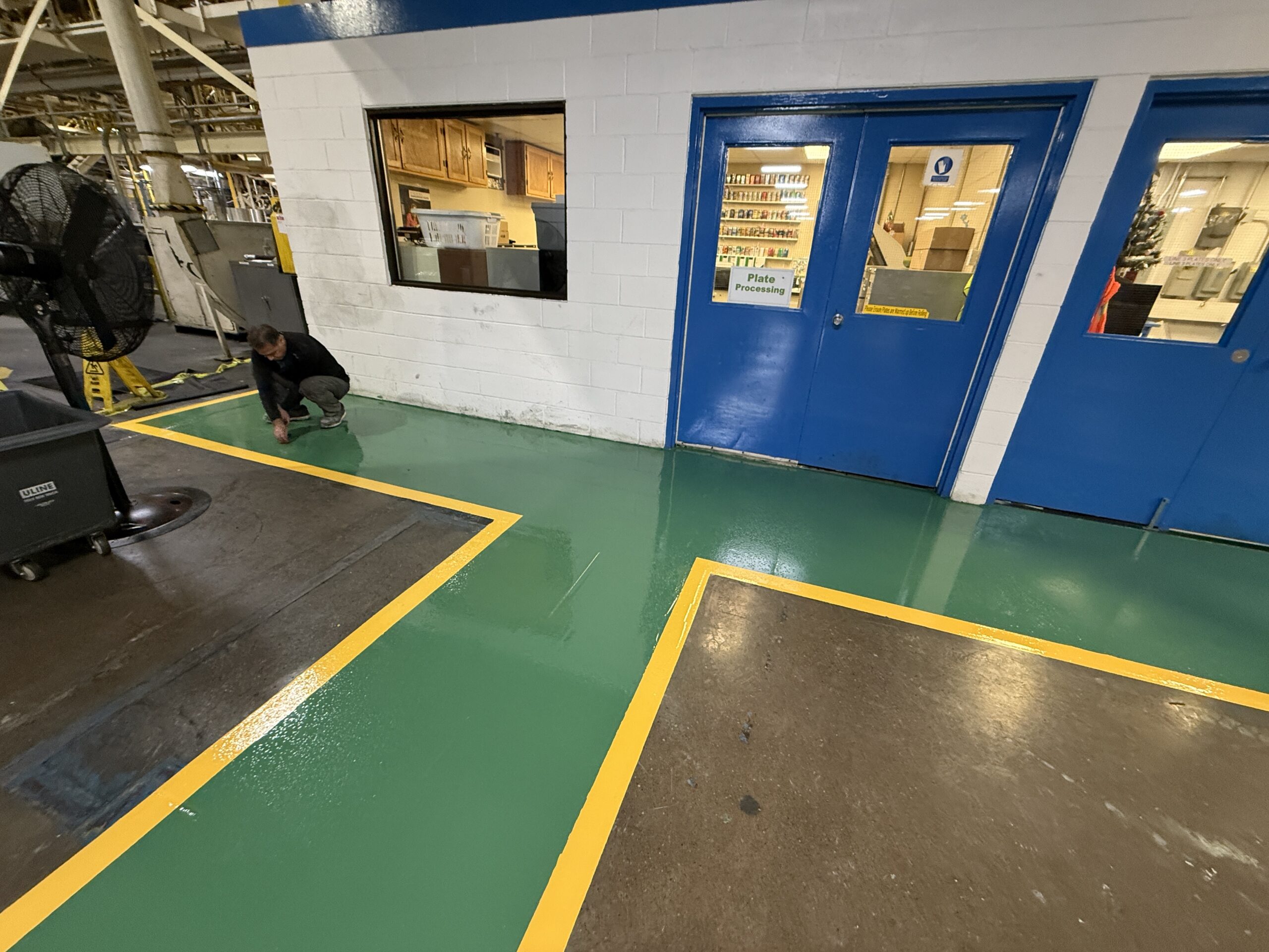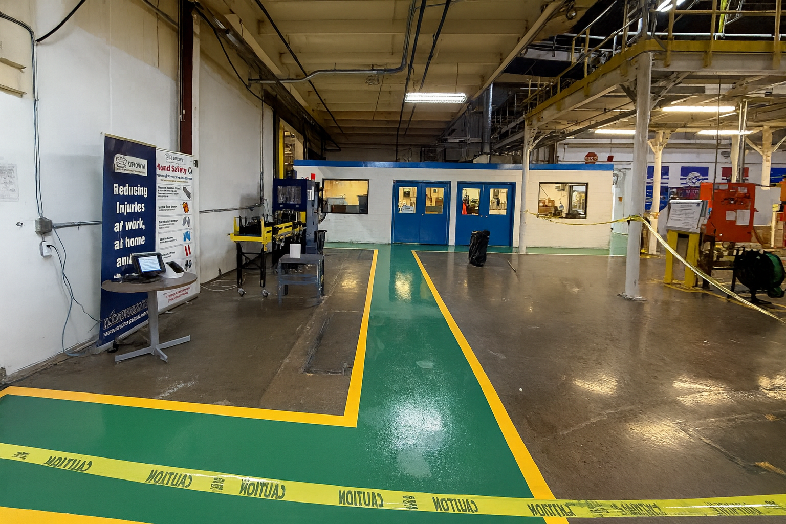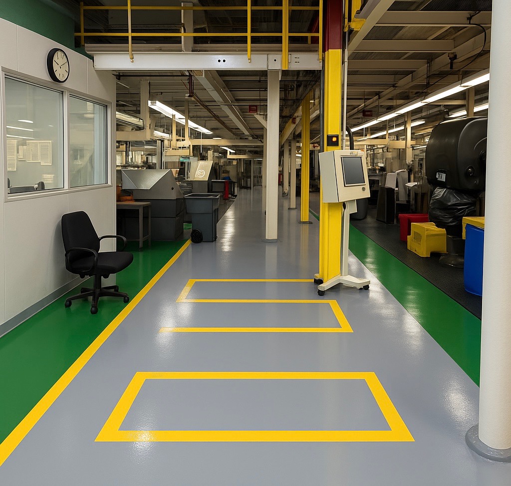 Precision-applied yellow lines for safer, more organized industrial and commercial spaces.